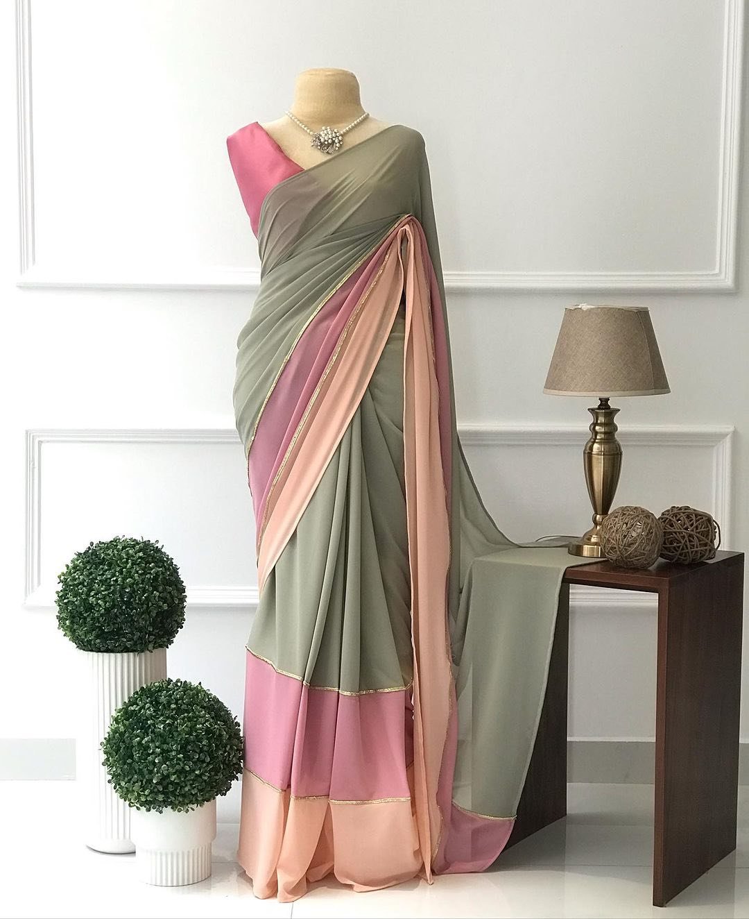 Crafted from Luxury Color-Block Shade Saree, the saree flows smoothly with a lightweight, airy feel. The subtle gold trim detailing along the borders adds a touch of luxury without overpowering the design, making it ideal for both formal and semi-formal occasions.