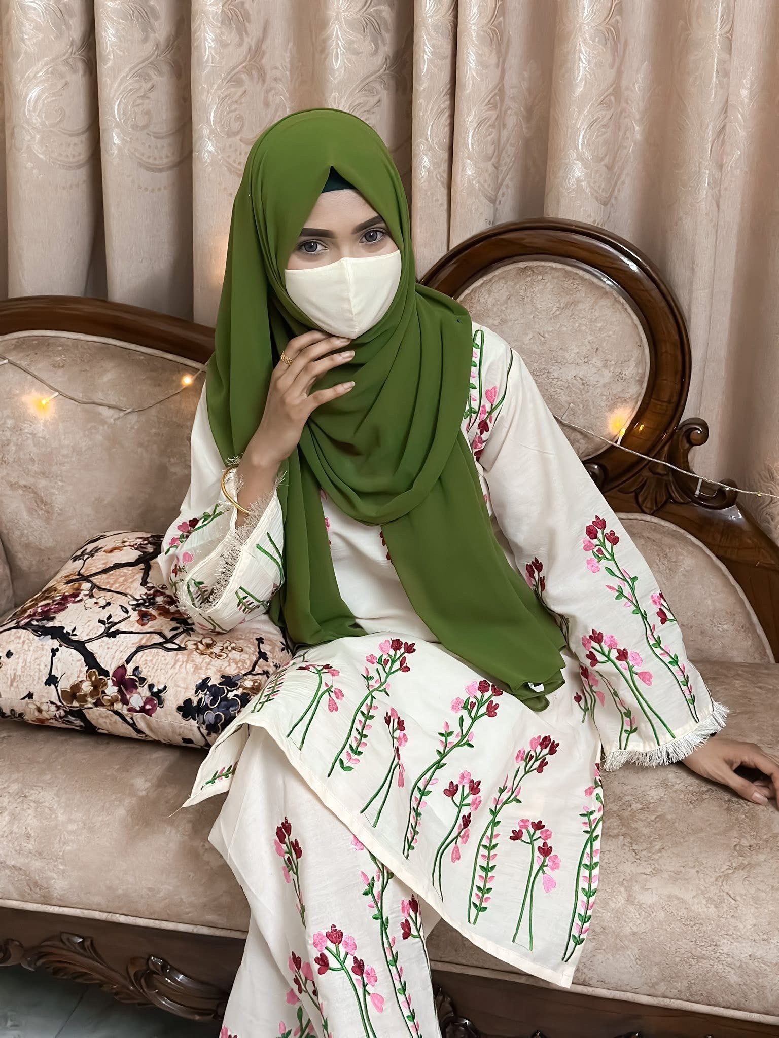 👗 জামা-পায়জামা জুড়ে দারুন এমব্রয়ডারি ও হাতে সুন্দর লেইস ডিজাইন করা আছে 💖