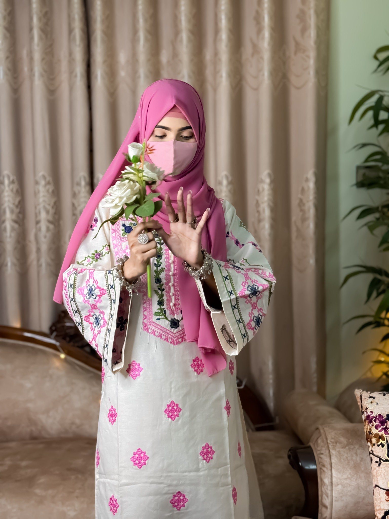 👗 জামা-পায়জামা জুড়ে দারুন এমব্রয়ডারি ও হাতে সুন্দর লেইস ডিজাইন করা আছে 💖