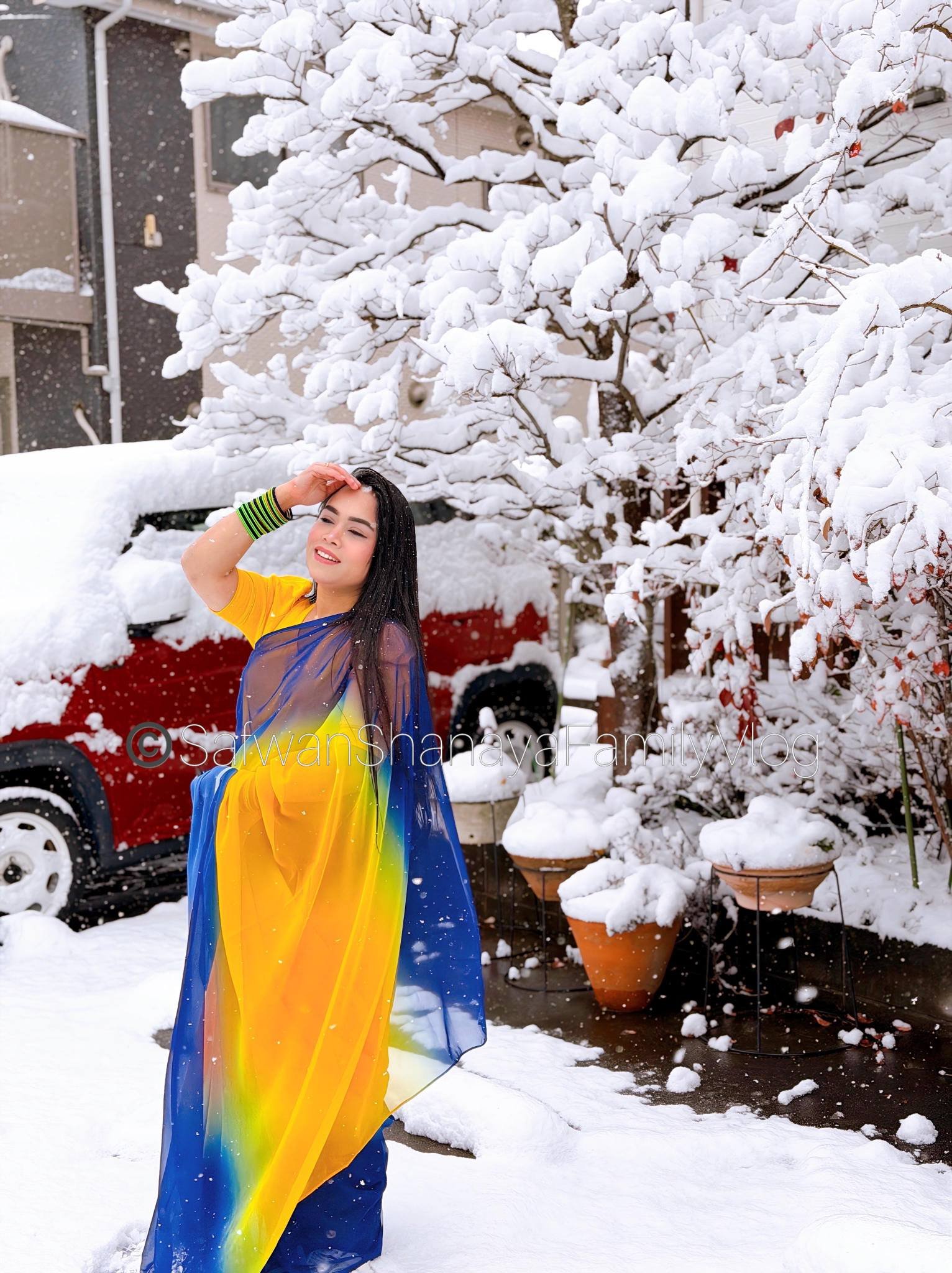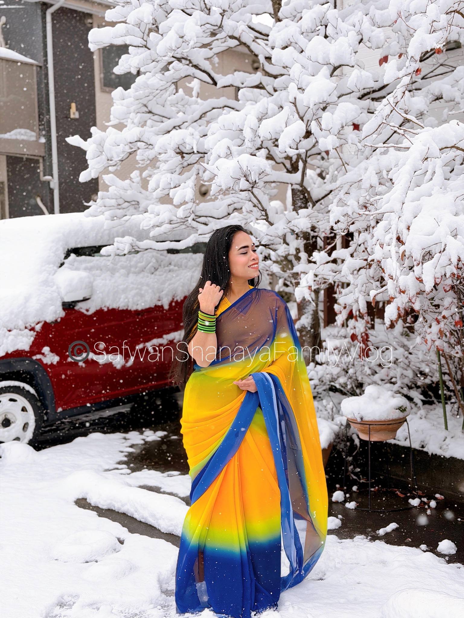 Made from lightweight and breathable fabric, this saree drapes smoothly and feels comfortable for long hours.